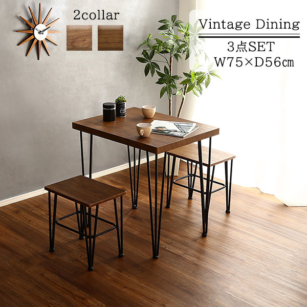 TOP > オブジェのようなアイアン脚 ヴィンテージ ダイニングテーブルセット 3点 / 2人 おしゃれ ウォールナット オーク ベンチ ミニダイニングテーブル 2人用 小さい コンパクト 安い 激安