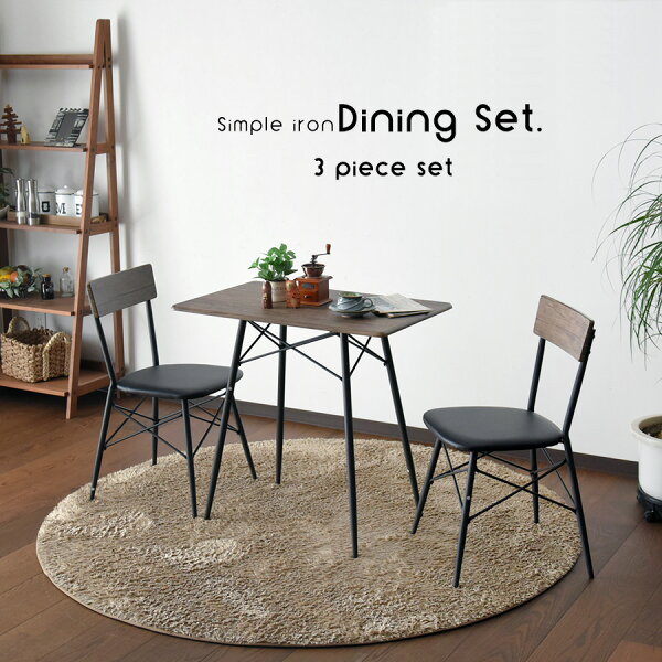 * ダイニングテーブルセット 2人掛け 幅80 3点セット ダイニング3点セット エンボス 2人用 アイアン ブラウン ホワイト ダイニングチェア ダイニングテーブル 省スペース 組立